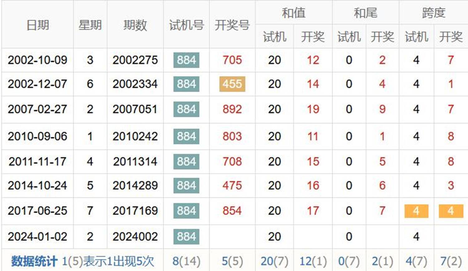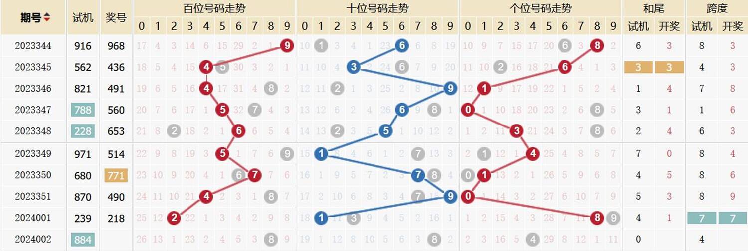期数 | 试机号 | 关注码 | 金码 | 对应码 | 开奖号 | 出号 |