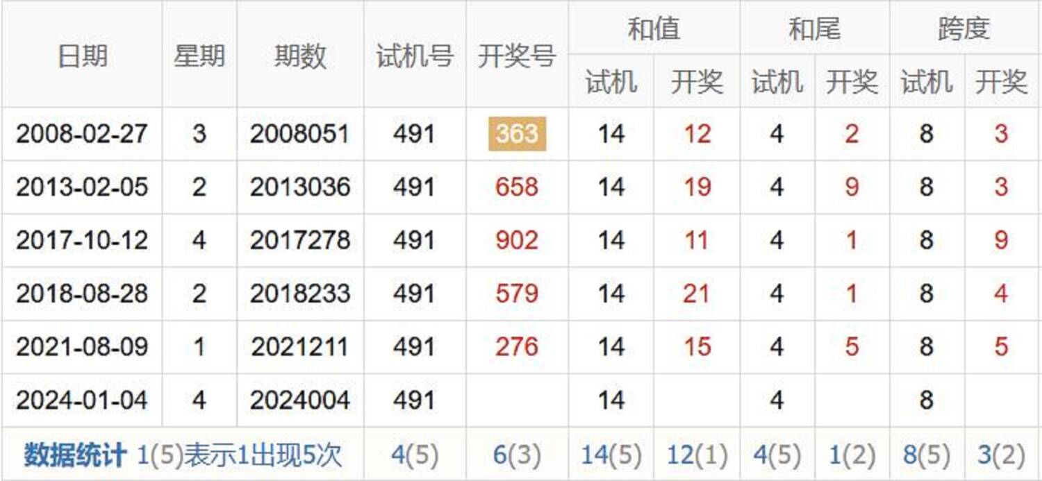 期数 | 试机号 | 关注码 | 金码 | 对应码 | 开奖号 | 出号 |