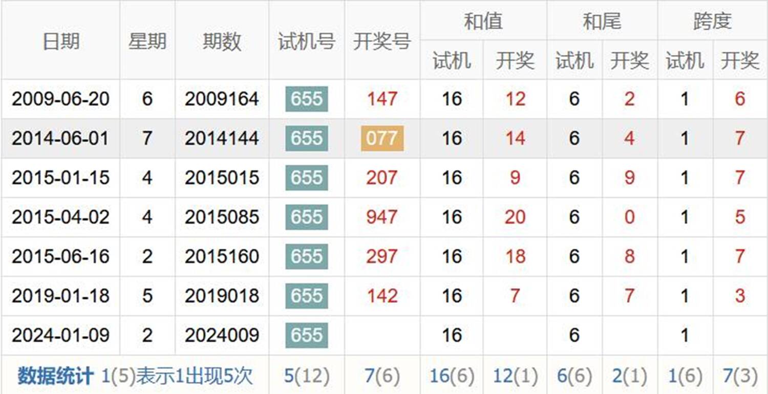 2009009期 试机号 877 开奖号 047 和 11