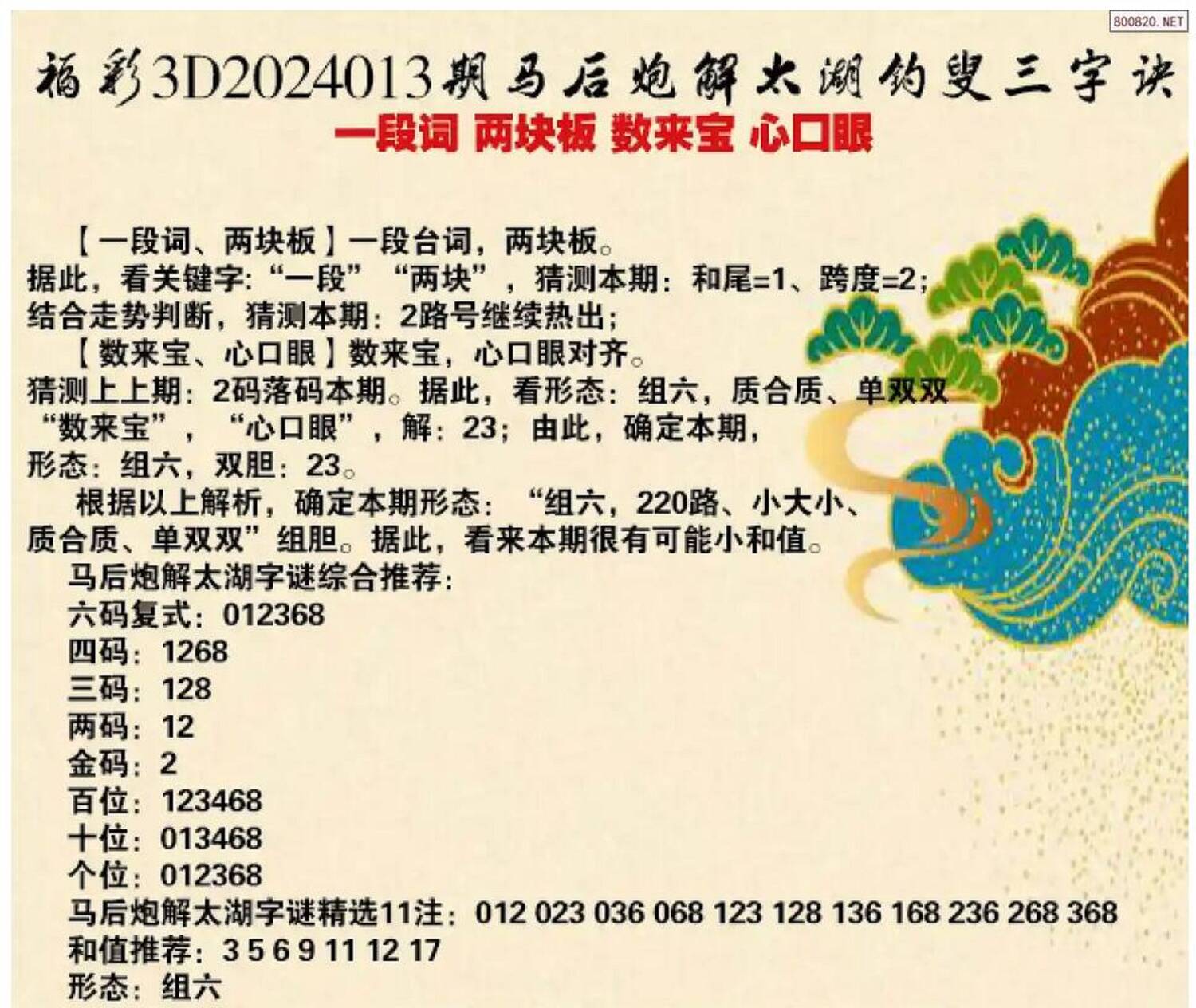 独胆:9 逻辑相同(开奖号码927,重号2.7的概率相当小)