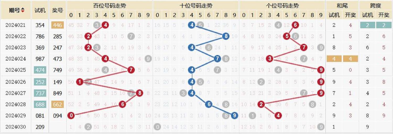 2021030期 试机号 193 开奖号 694 和 19