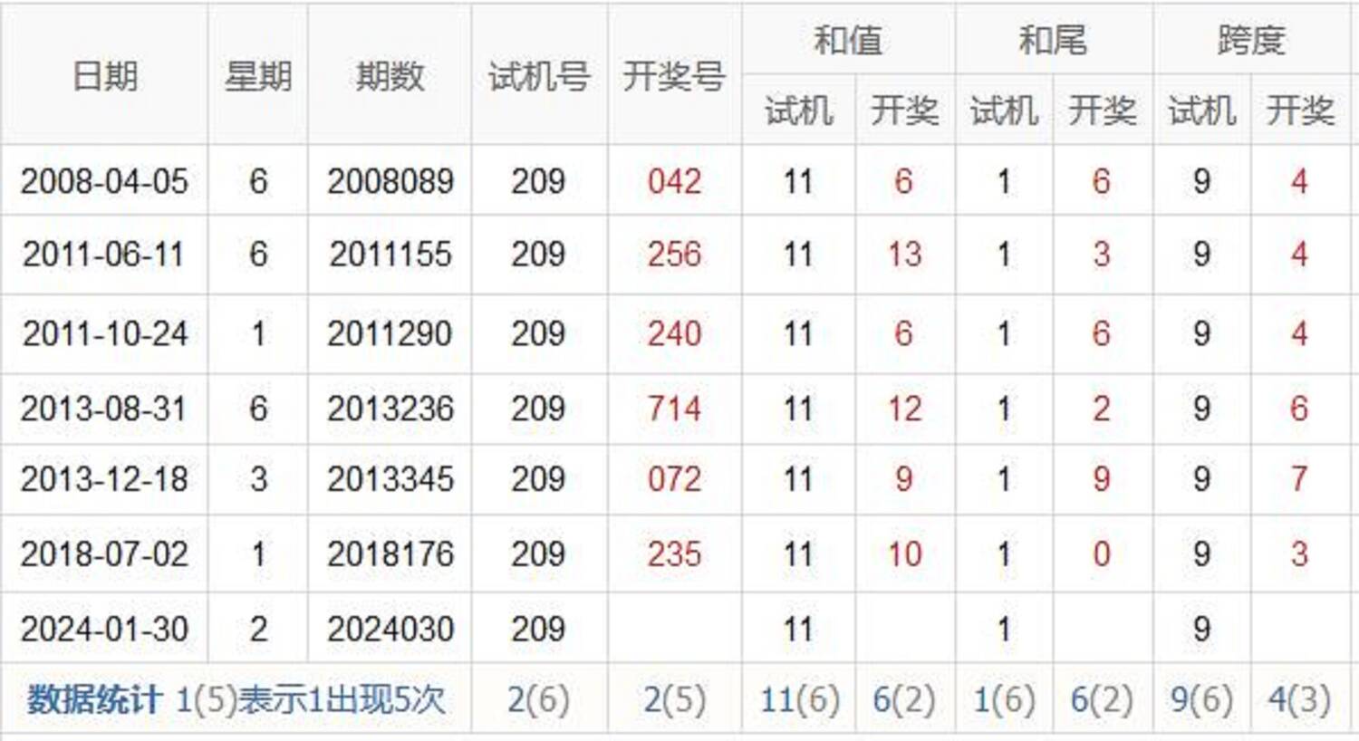历史出现情况统计