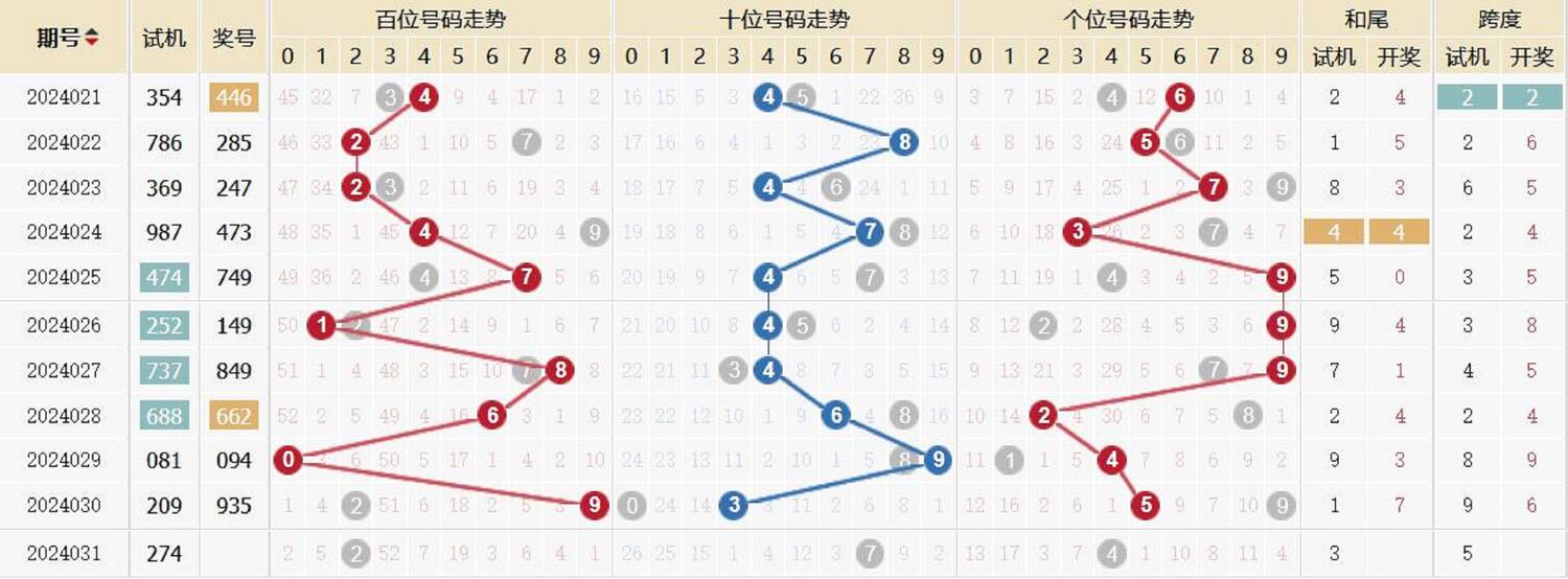 期数 | 试机号 | 关注码 | 金码 | 对应码 | 开奖号 | 出号 |
