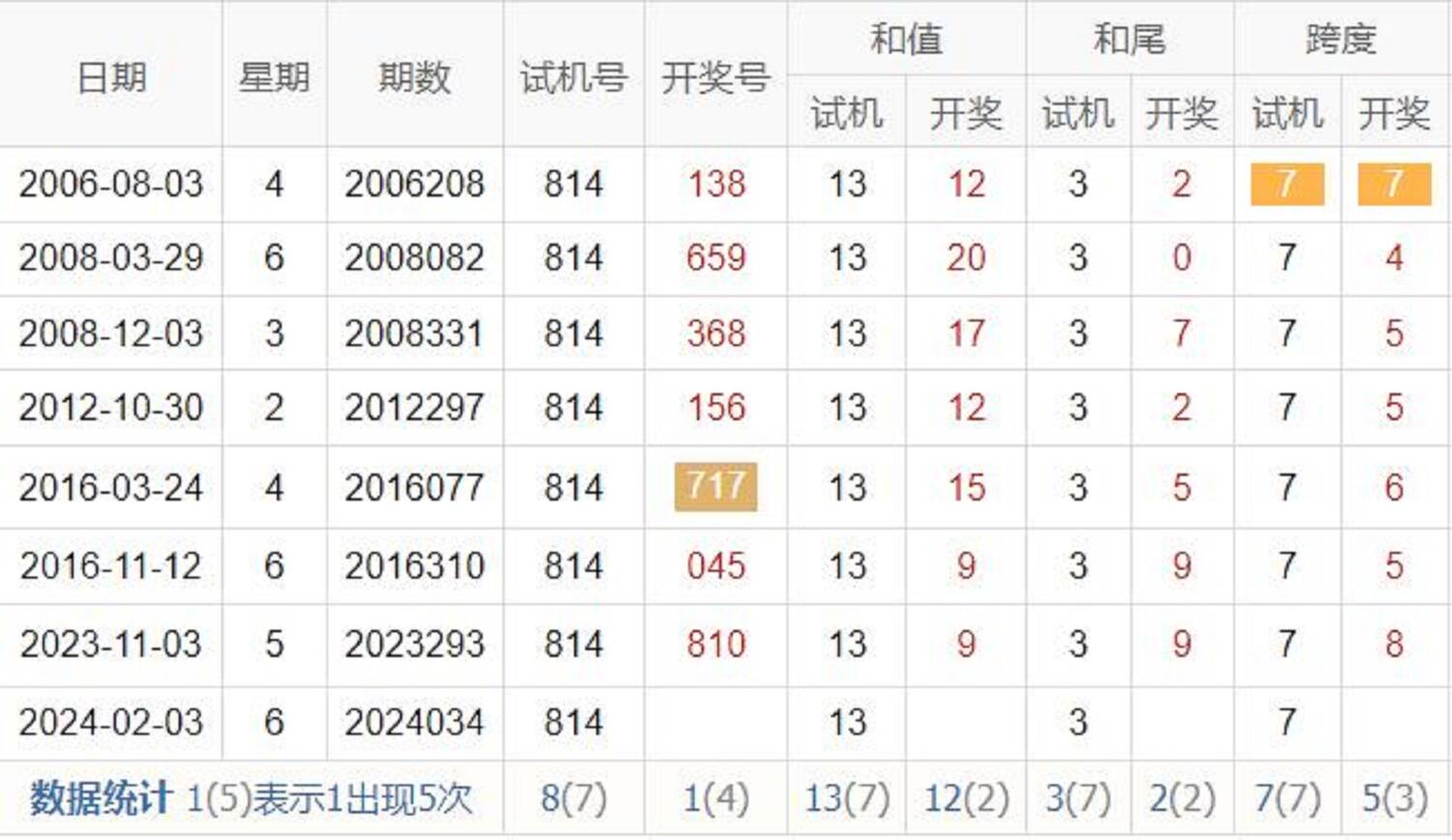 期数 | 试机号 | 关注码 | 金码 | 对应码 | 开奖号 | 出号 |