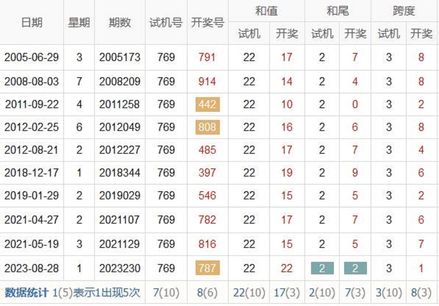 历史出现情况统计