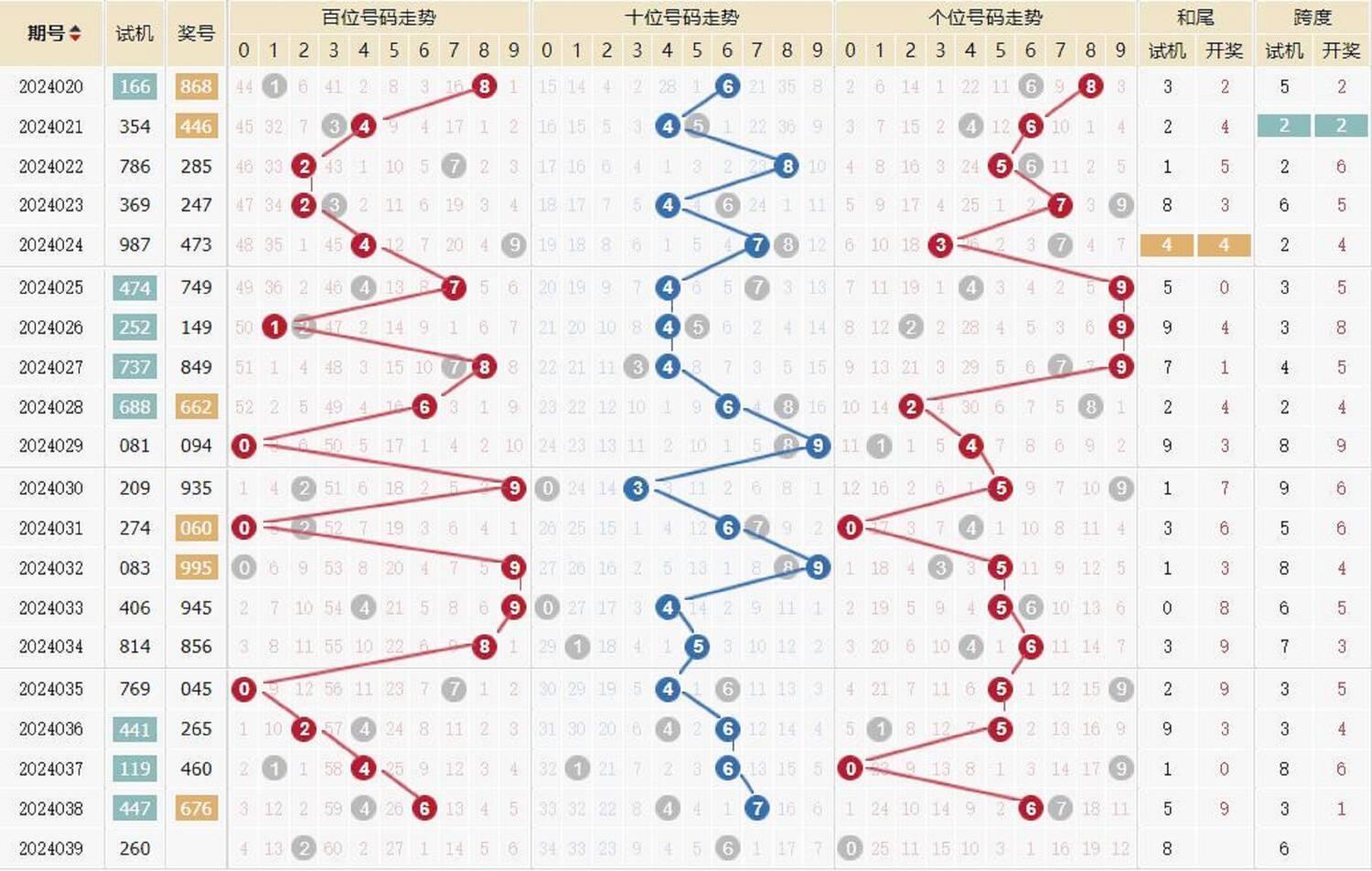 期数 | 试机号 | 关注码 | 金码 | 对应码 | 开奖号 | 出号 |