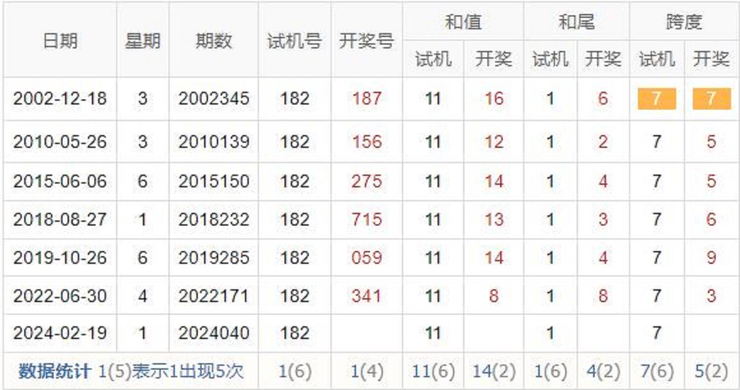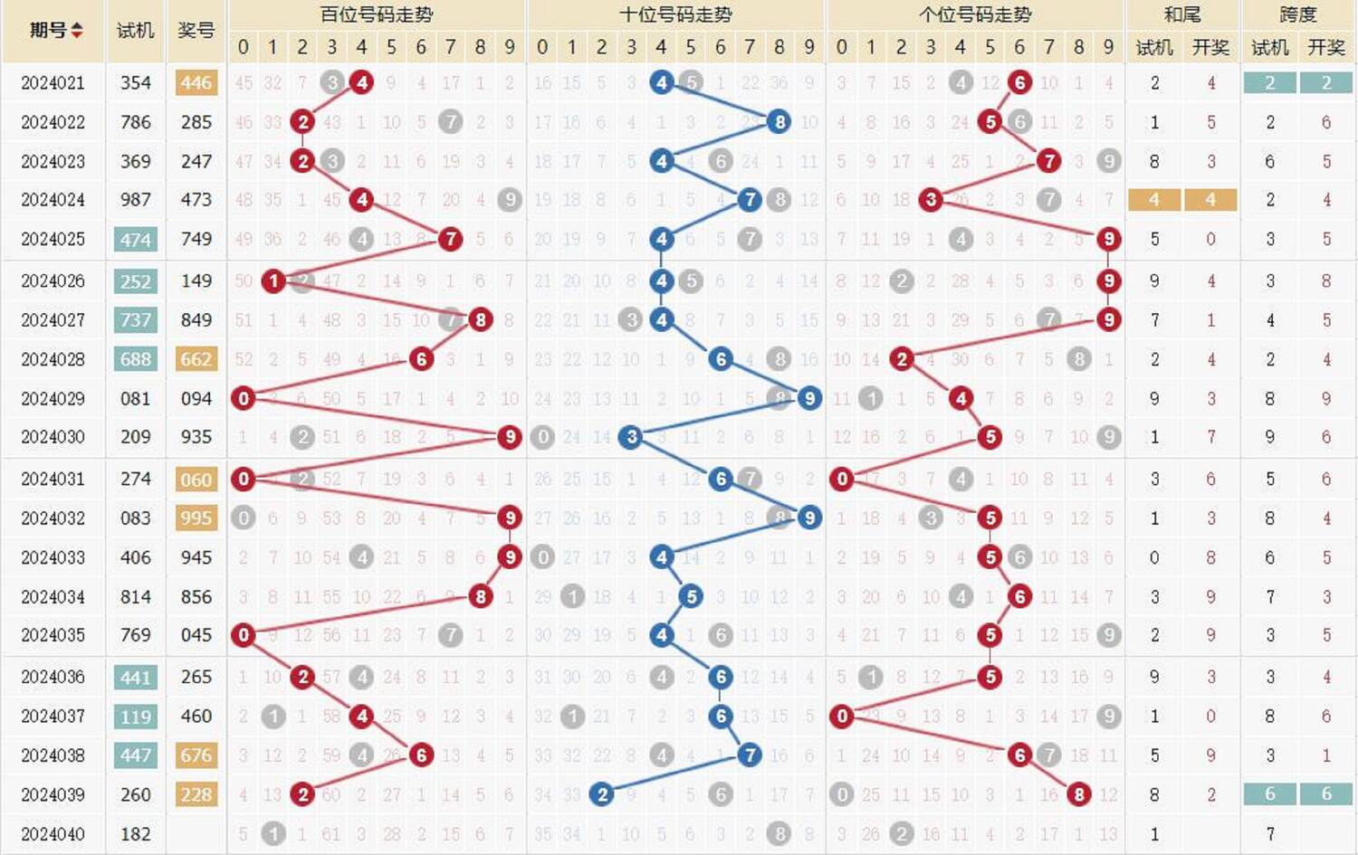 期数 | 试机号 | 关注码 | 金码 | 对应码 | 开奖号 | 出号 |