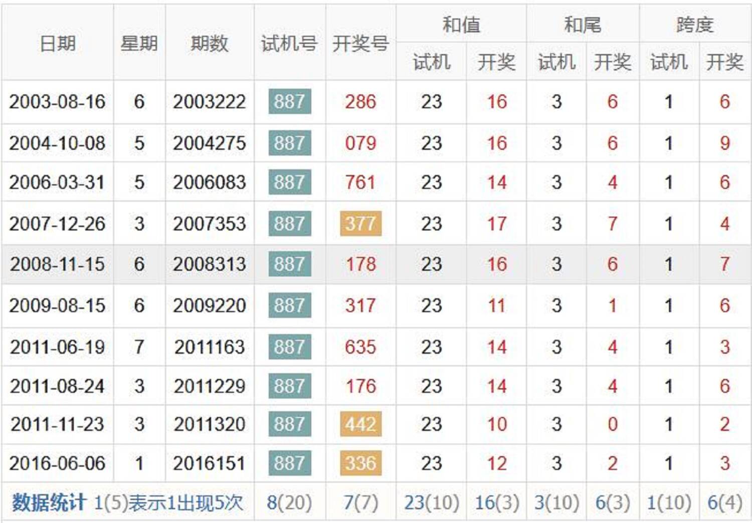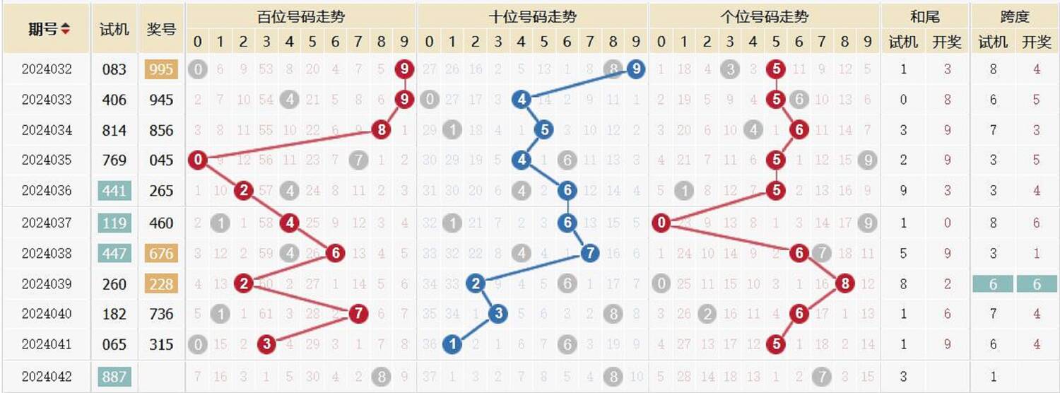 期数 | 试机号 | 关注码 | 金码 | 对应码 | 开奖号 | 出号 |