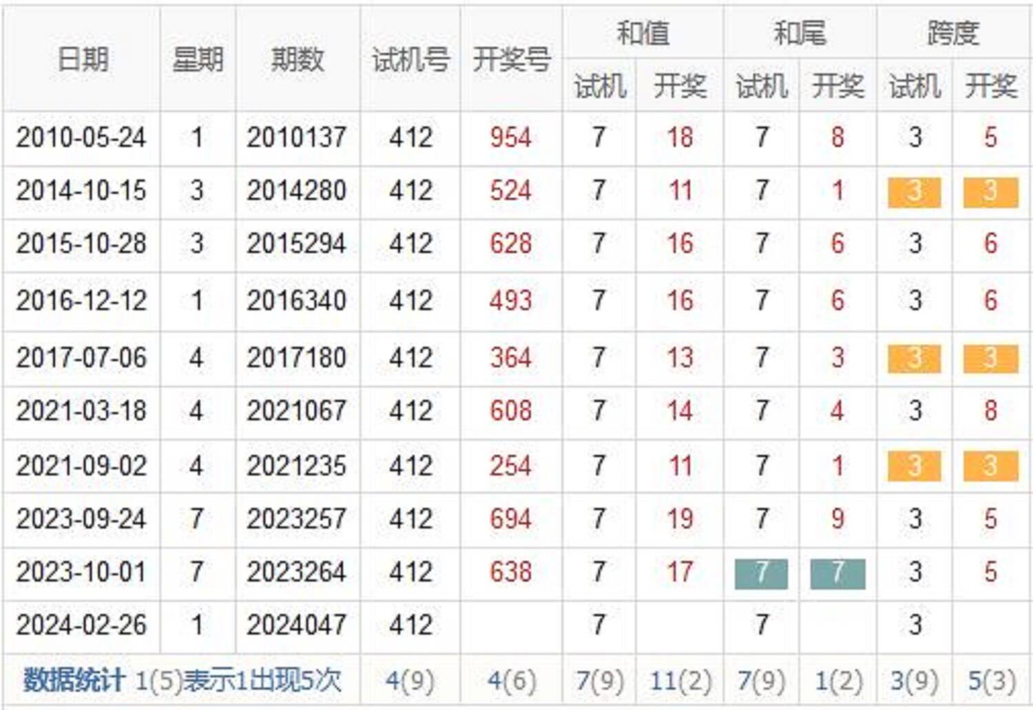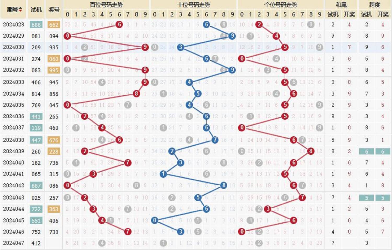 期数 | 试机号 | 关注码 | 金码 | 对应码 | 开奖号 | 出号 |