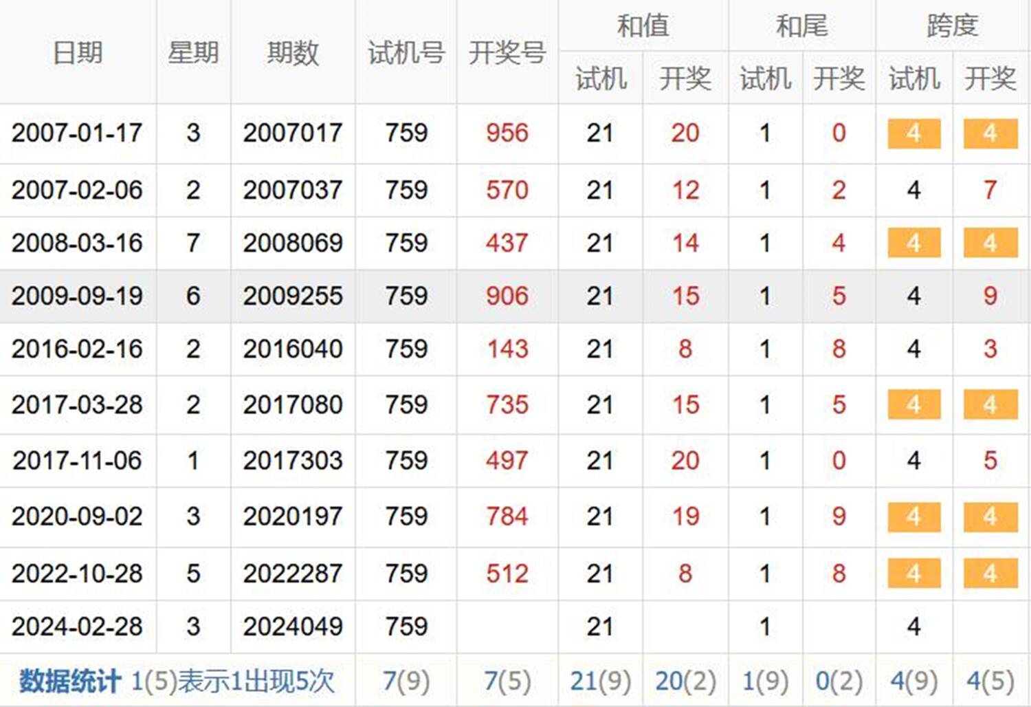 历史出现情况统计