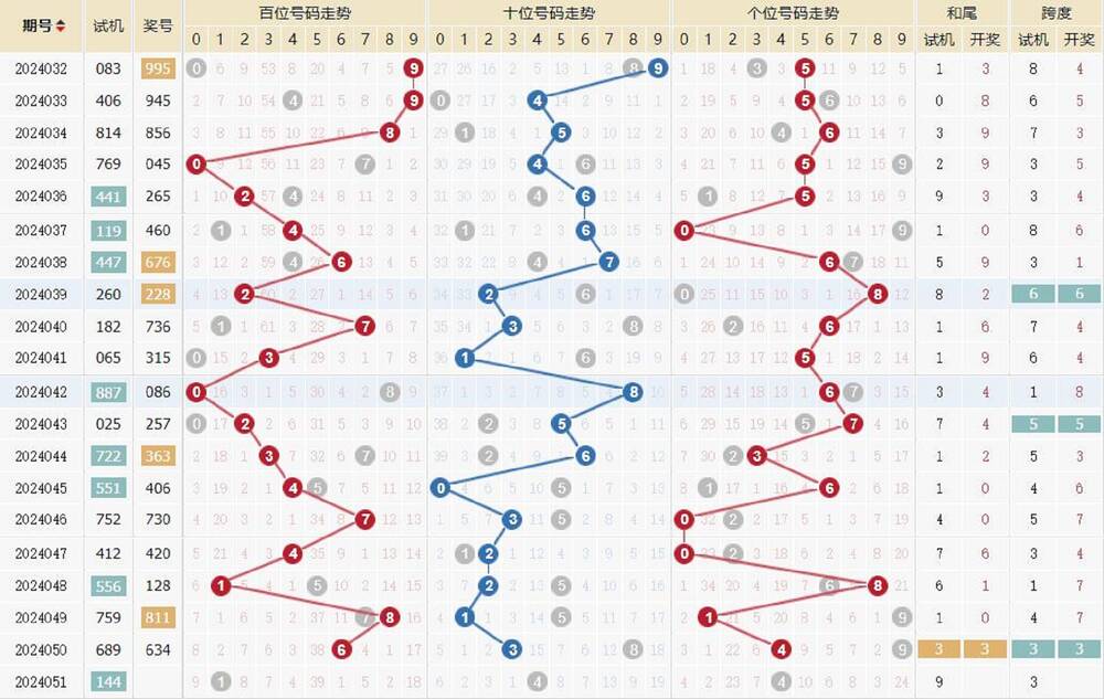 期数 | 试机号 | 关注码 | 金码 | 对应码 | 开奖号 | 出号 |