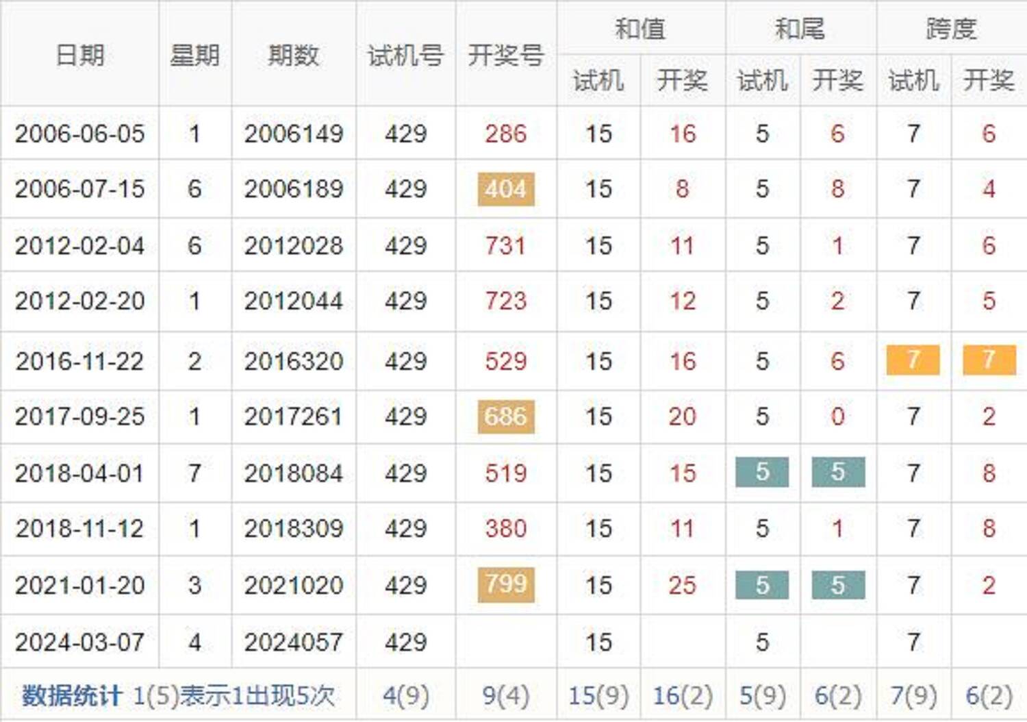历史出现情况统计