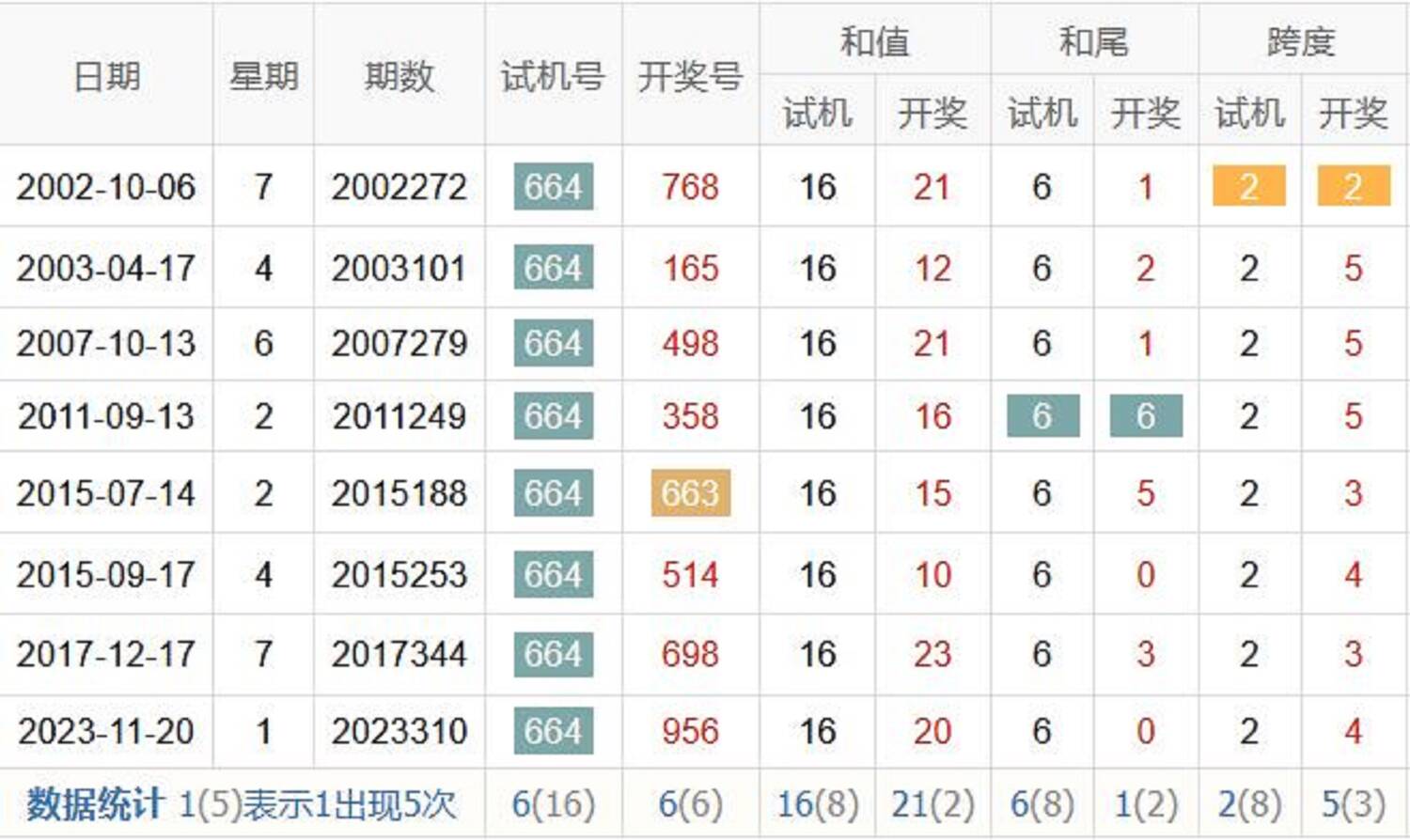 历史出现情况统计