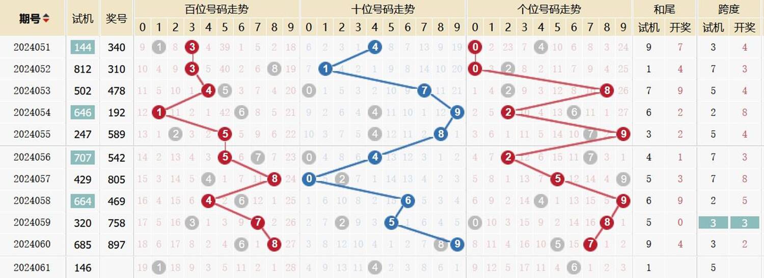 期数 | 试机号 | 关注码 | 金码 | 对应码 | 开奖号 | 出号 |