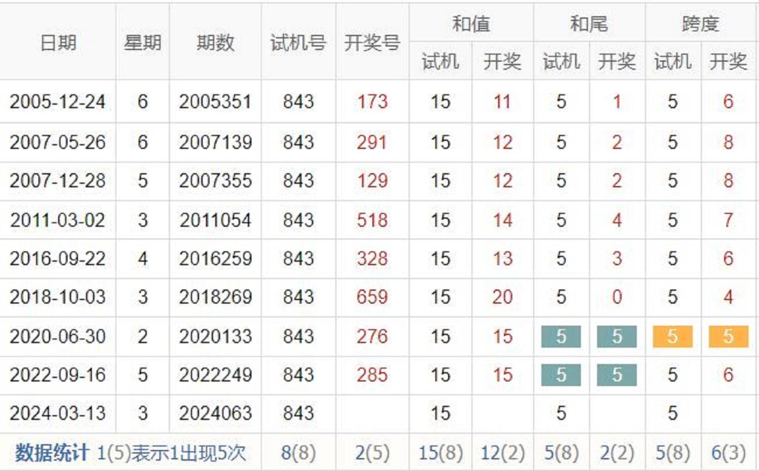 历史出现情况统计