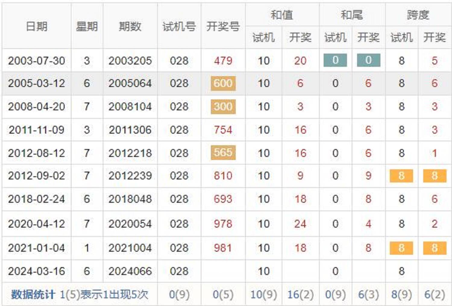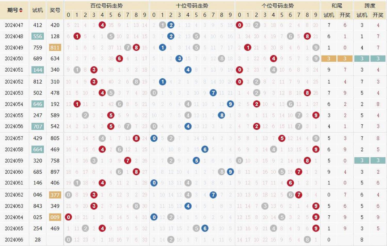 期数 | 试机号 | 关注码 | 金码 | 对应码 | 开奖号 | 出号 |
