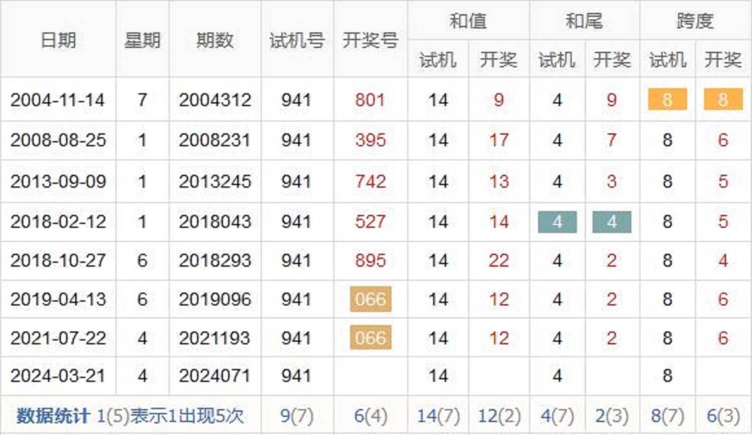 期数 | 试机号 | 关注码 | 金码 | 对应码 | 开奖号 | 出号 |