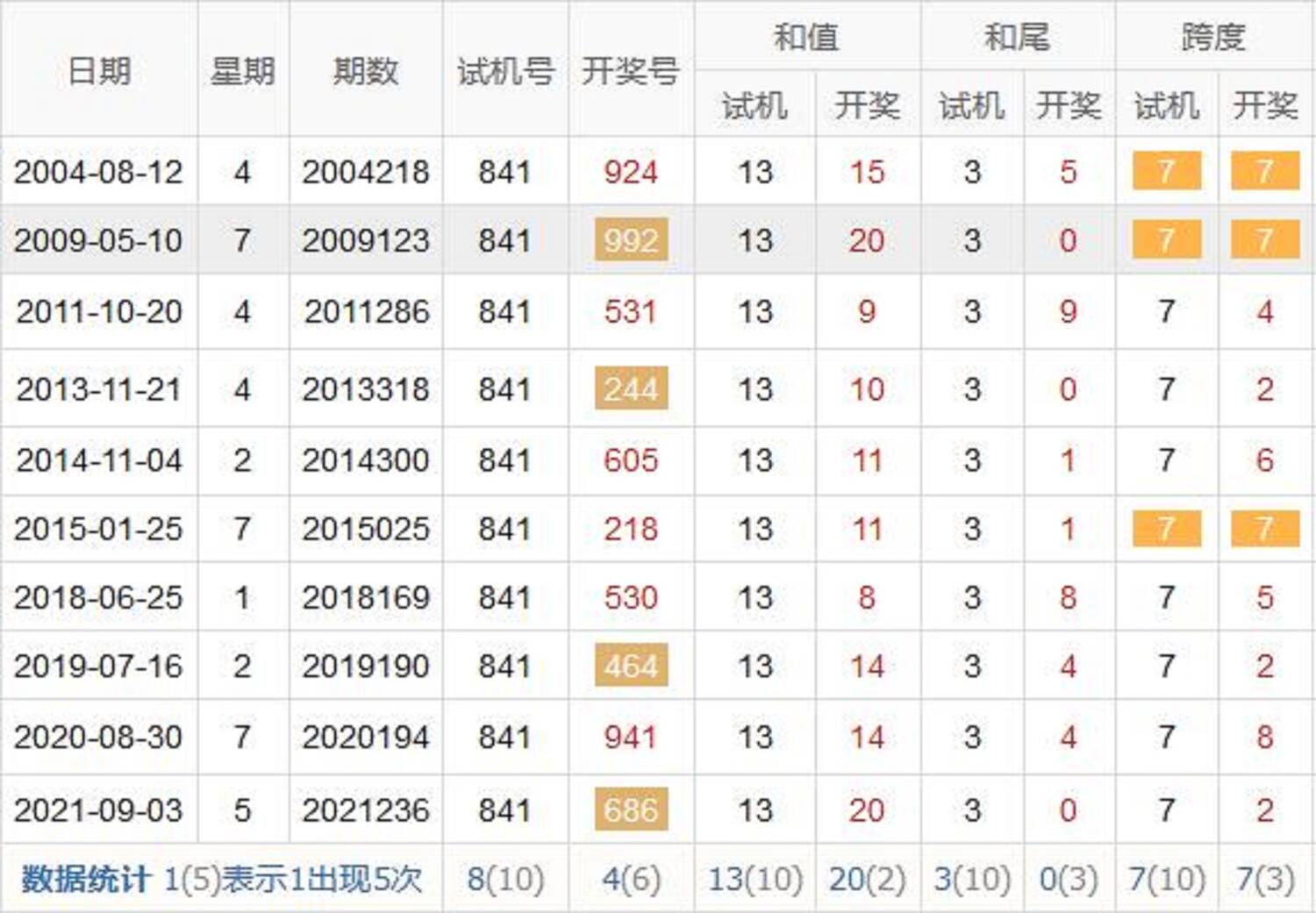 历史出现情况统计