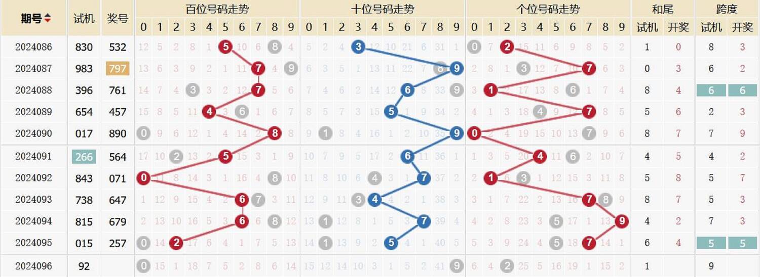 2018096期 试机号 973 开奖号 243 和 9