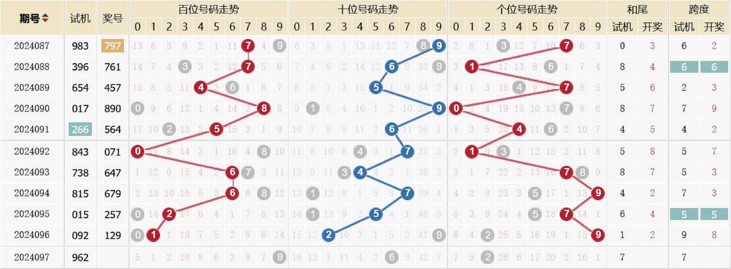 期数 | 试机号 | 关注码 | 金码 | 对应码 | 开奖号 | 出号 |