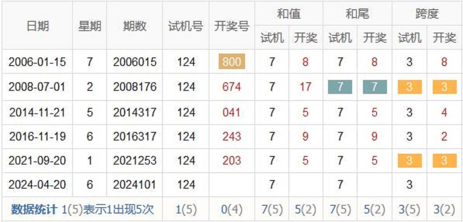 期数 | 试机号 | 关注码 | 金码 | 对应码 | 开奖号 | 出号 |