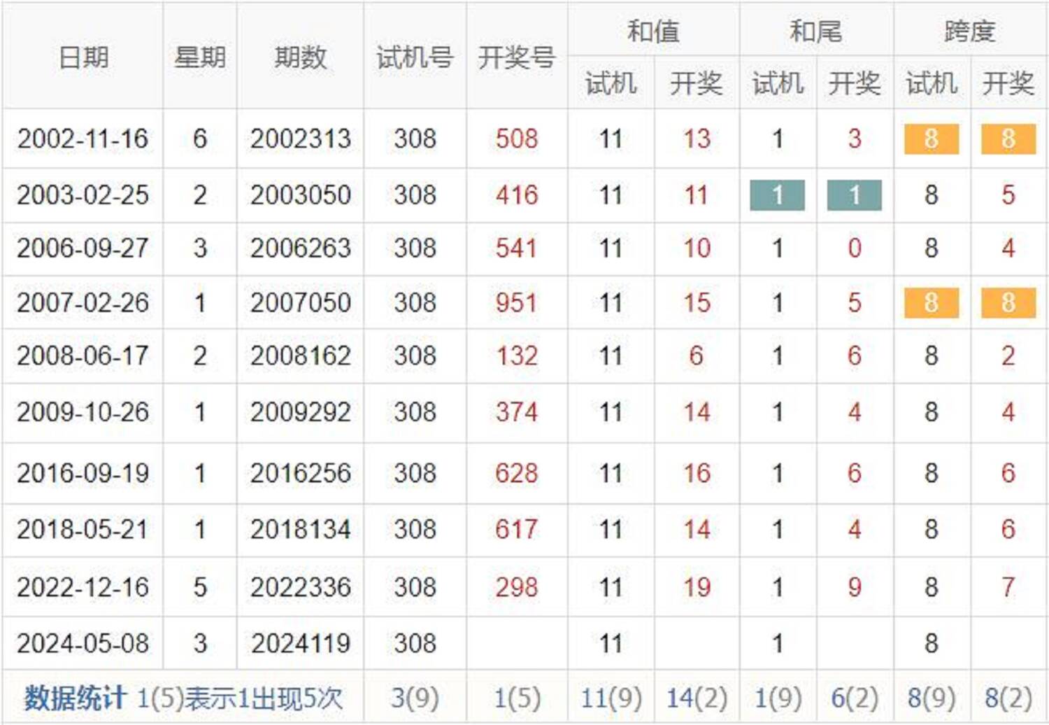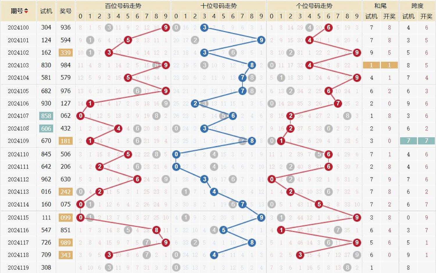 期数 | 试机号 | 关注码 | 金码 | 对应码 | 开奖号 | 出号 |