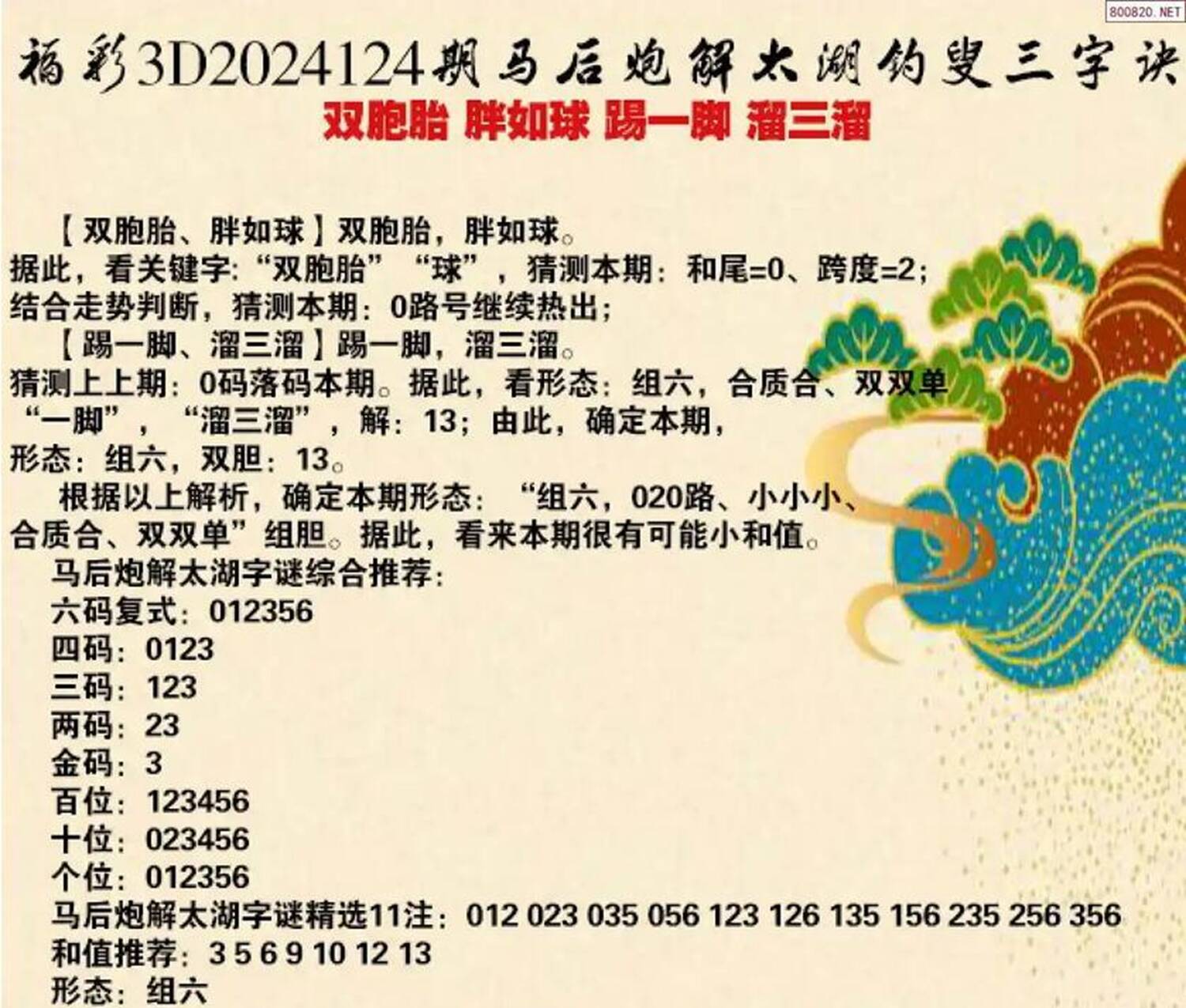 3d六码134678.....