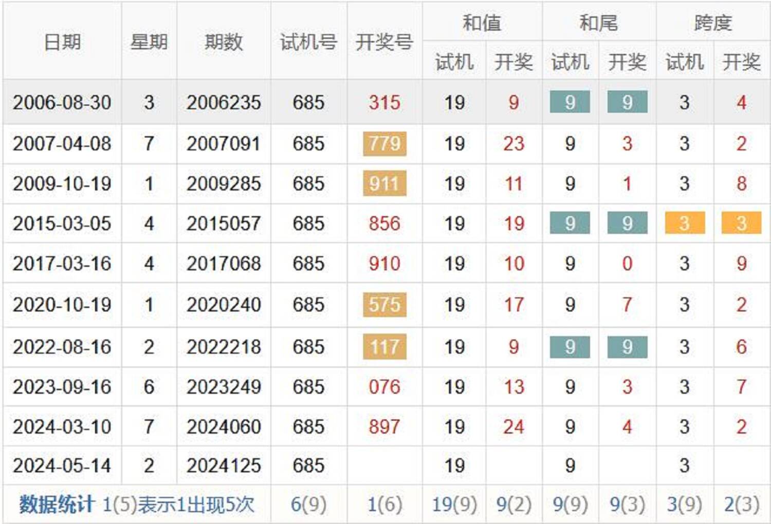 期数 | 试机号 | 关注码 | 金码 | 对应码 | 开奖号 | 出号 |