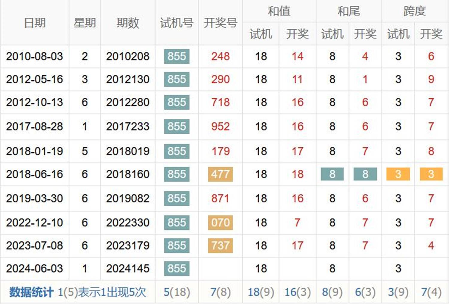 历史出现情况统计