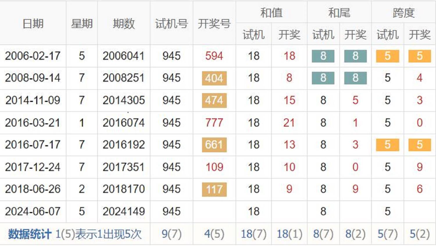 历史出现情况统计