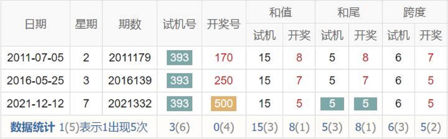 历史出现情况统计