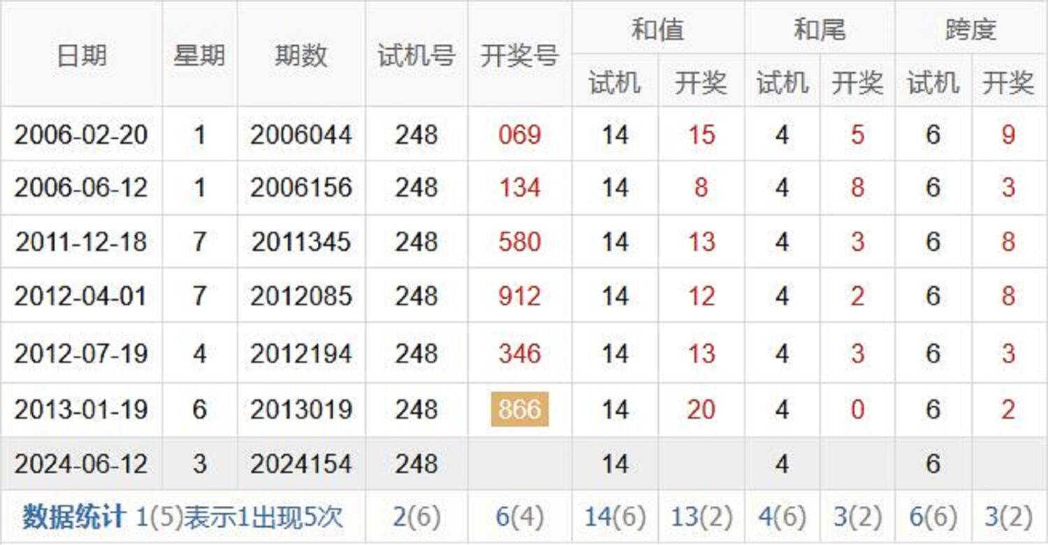 154期历史开奖号