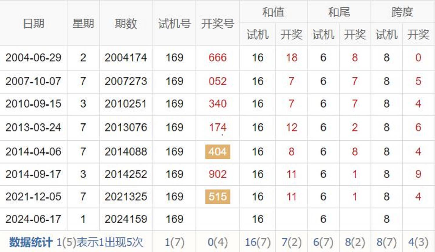 历史出现情况统计