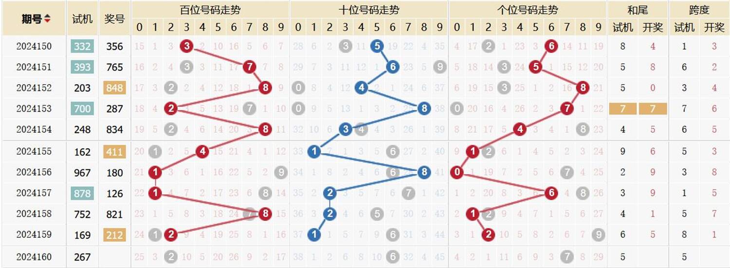 期数 | 试机号 | 关注码 | 金码 | 对应码 | 开奖号 | 出号 |