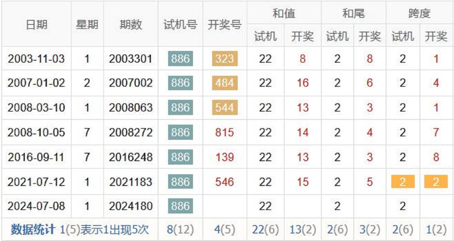 2022180期 试机号 244 开奖号 503 和 8
