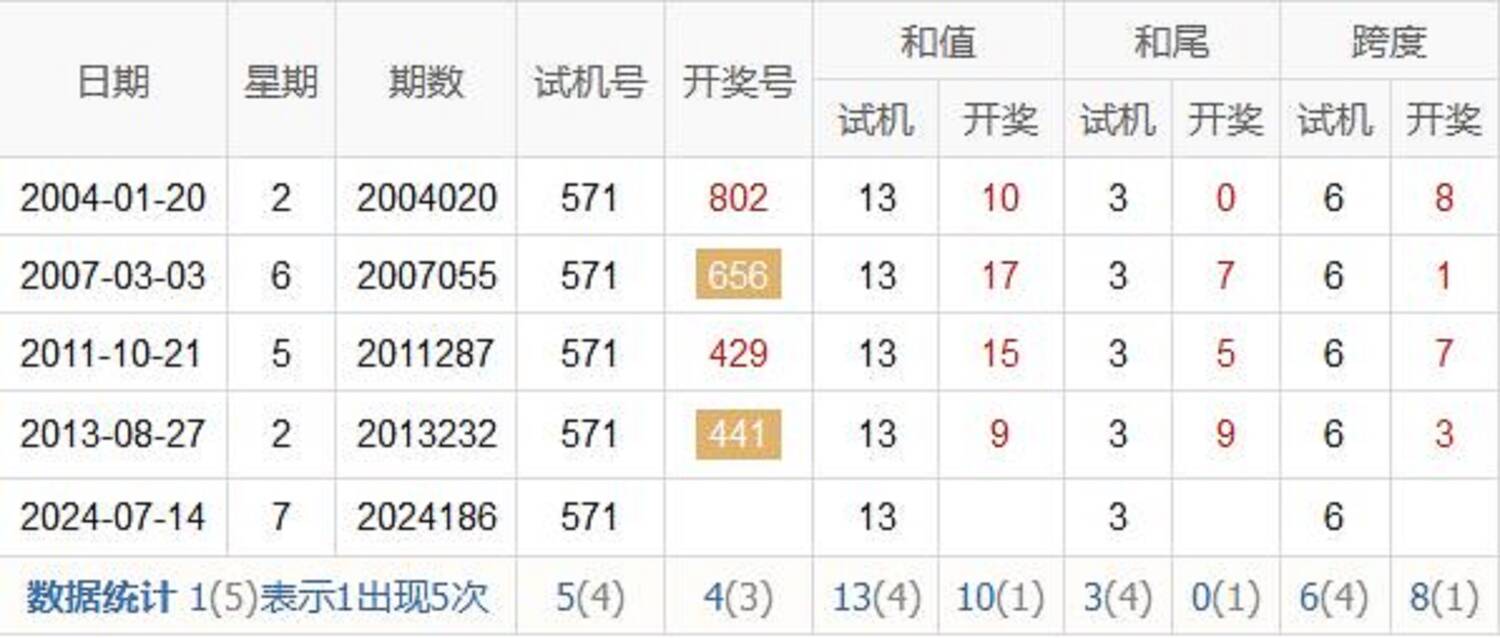 期数 | 试机号 | 关注码 | 金码 | 对应码 | 开奖号 | 出号 |