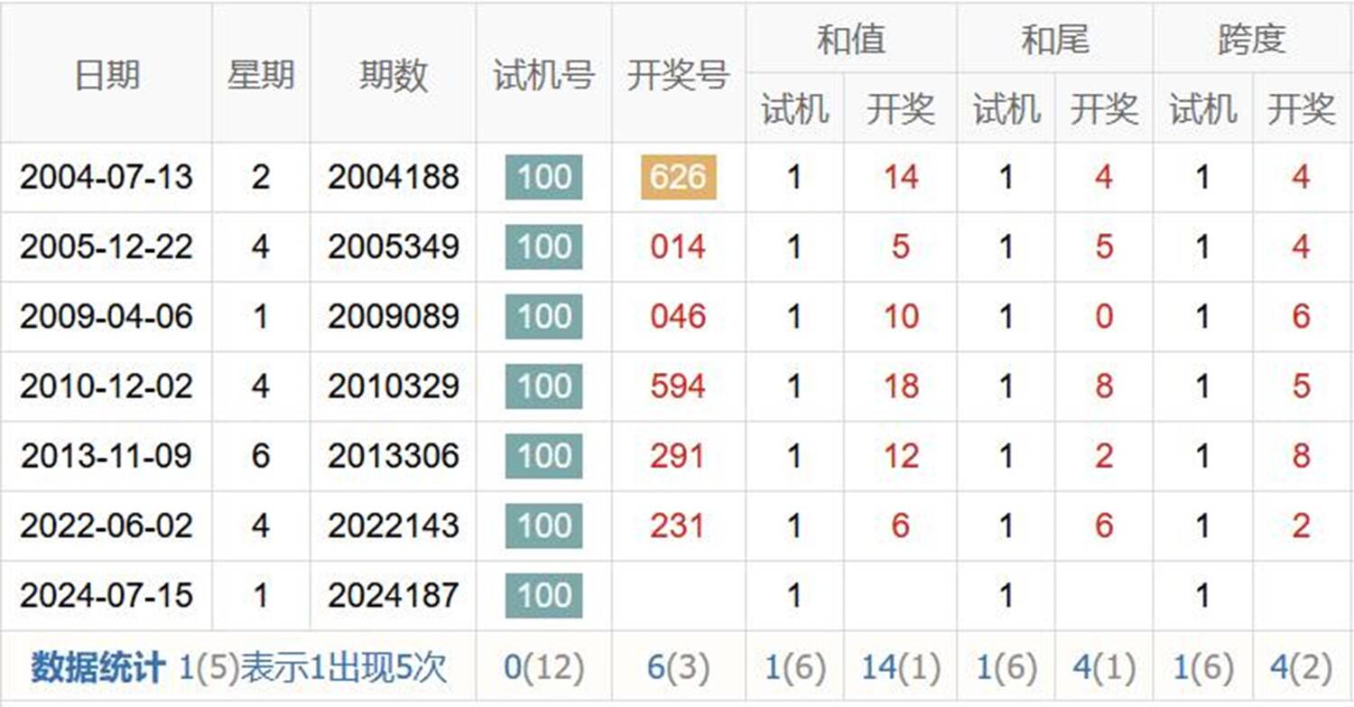 期数 | 试机号 | 关注码 | 金码 | 对应码 | 开奖号 | 出号 |