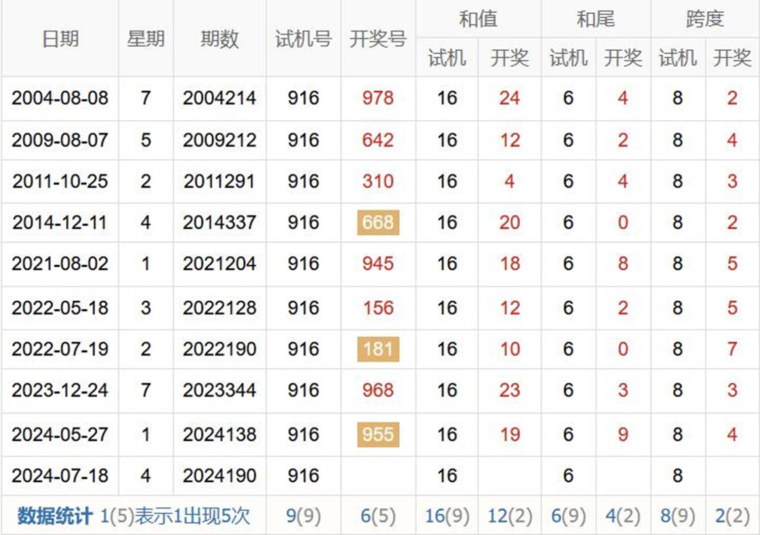 历史出现情况统计