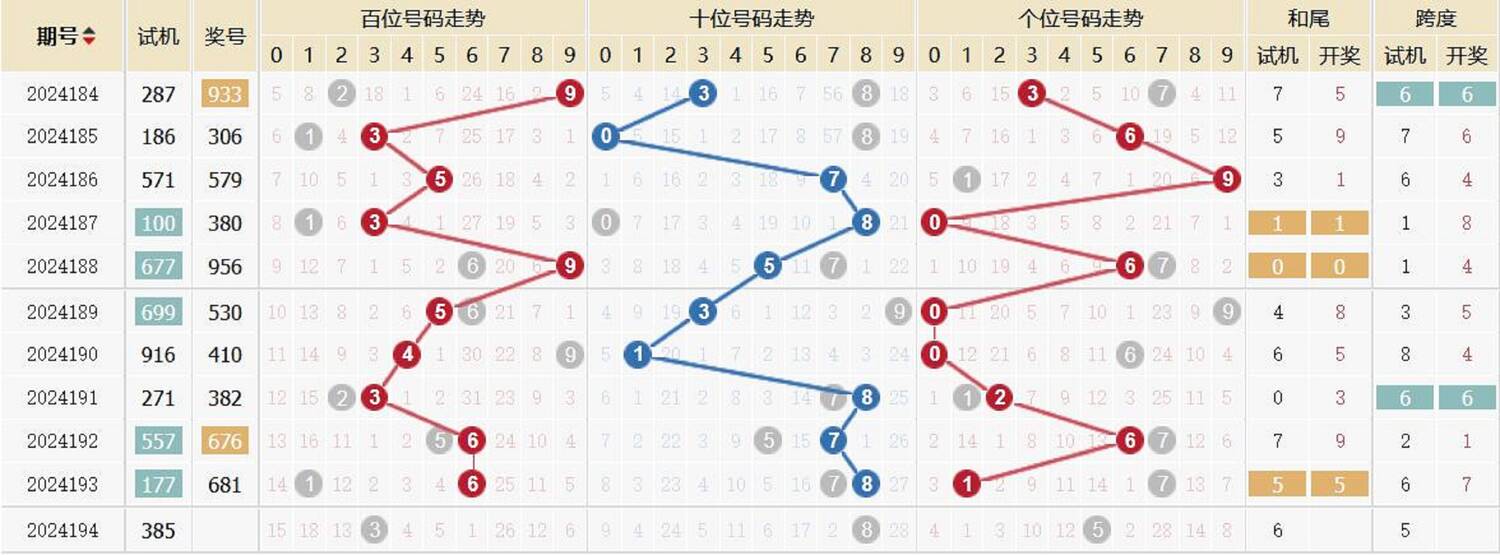 2003194期 试机号 030 开奖号 243 和 9