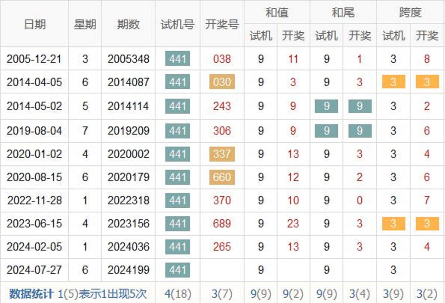 期数 | 试机号 | 关注码 | 金码 | 对应码 | 开奖号 | 出号 |