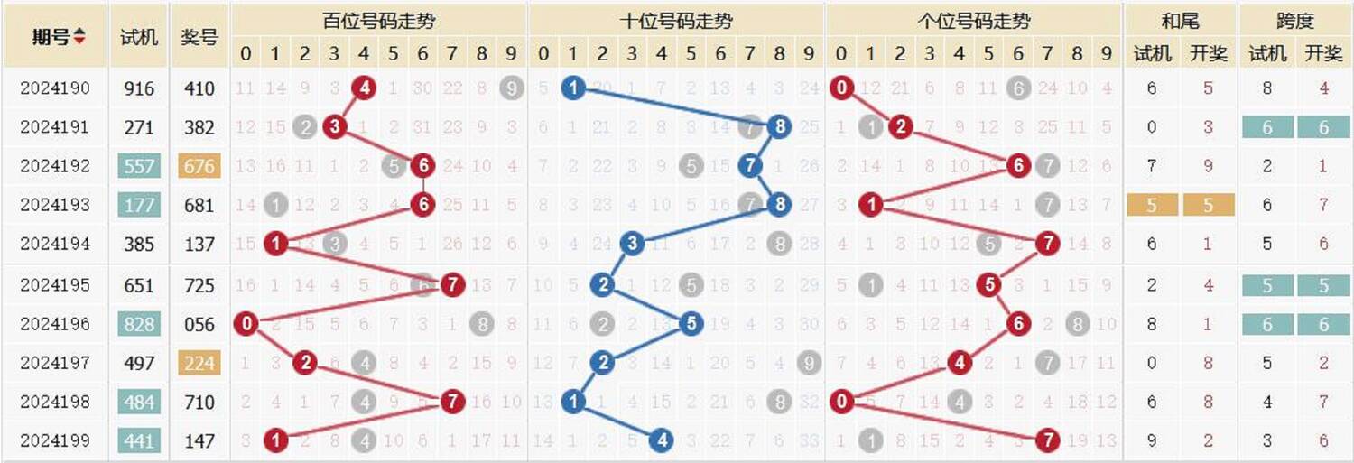 期数 | 试机号 | 关注码 | 金码 | 对应码 | 开奖号 | 出号 |