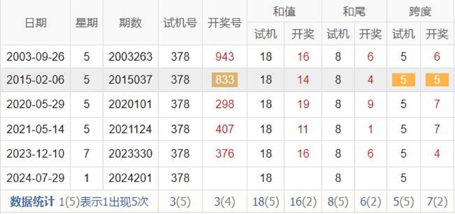 期数 | 试机号 | 关注码 | 金码 | 对应码 | 开奖号 | 出号 |
