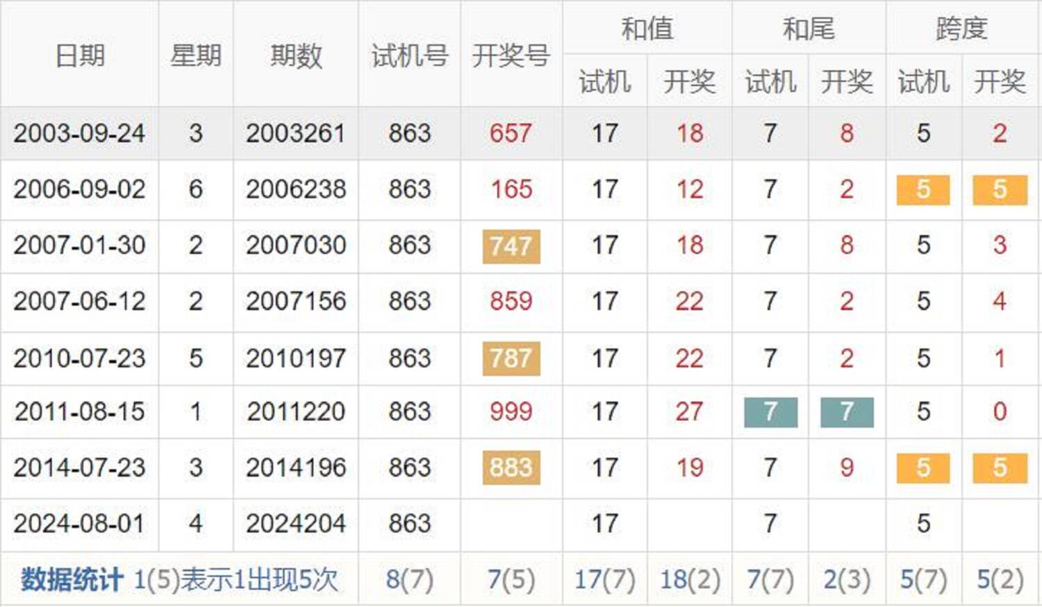 期数 | 试机号 | 关注码 | 金码 | 对应码 | 开奖号 | 出号 |