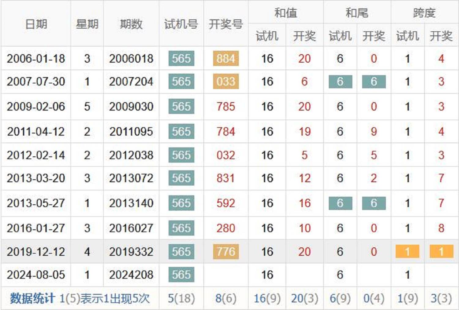 历史出现情况统计