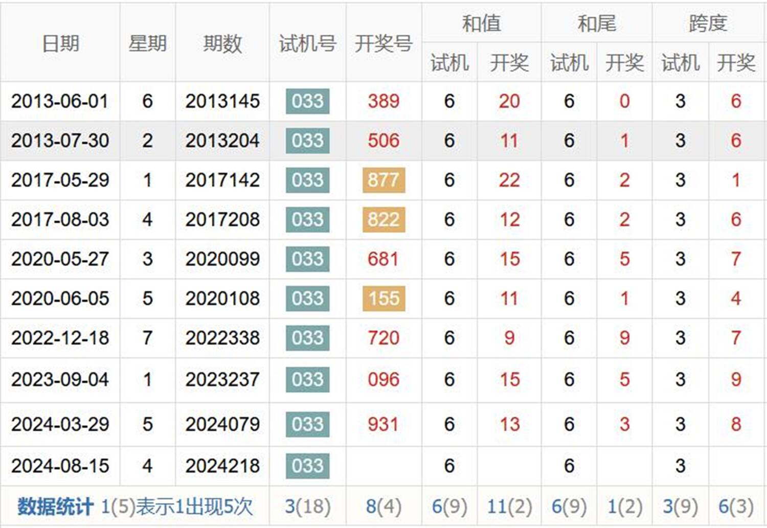 期数 | 试机号 | 关注码 | 金码 | 对应码 | 开奖号 | 出号 |