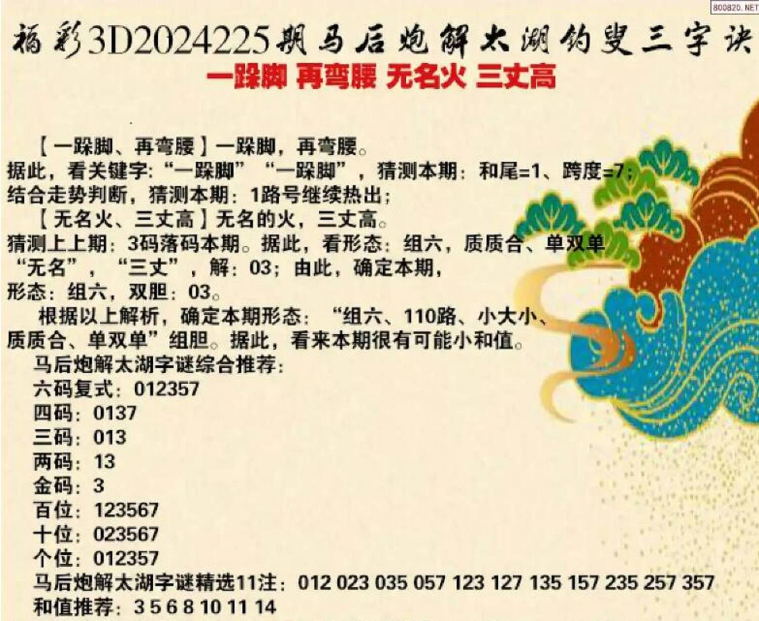 独胆5.个位5双飞,25.56.45.05.3525胆拖0346单组选,205 235 245 265资料越多越乱,相信自己,谨慎投资