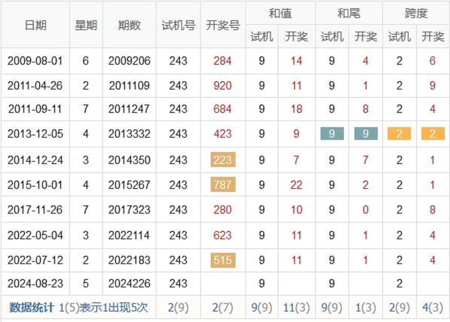 和尾:9 跨度:2