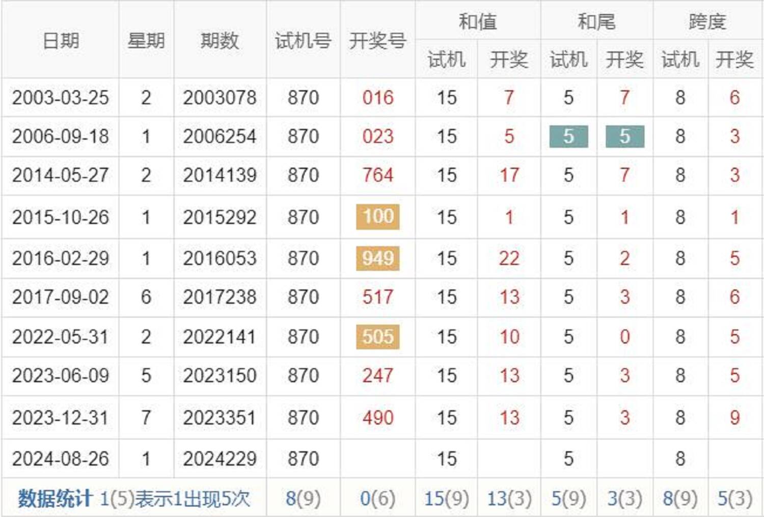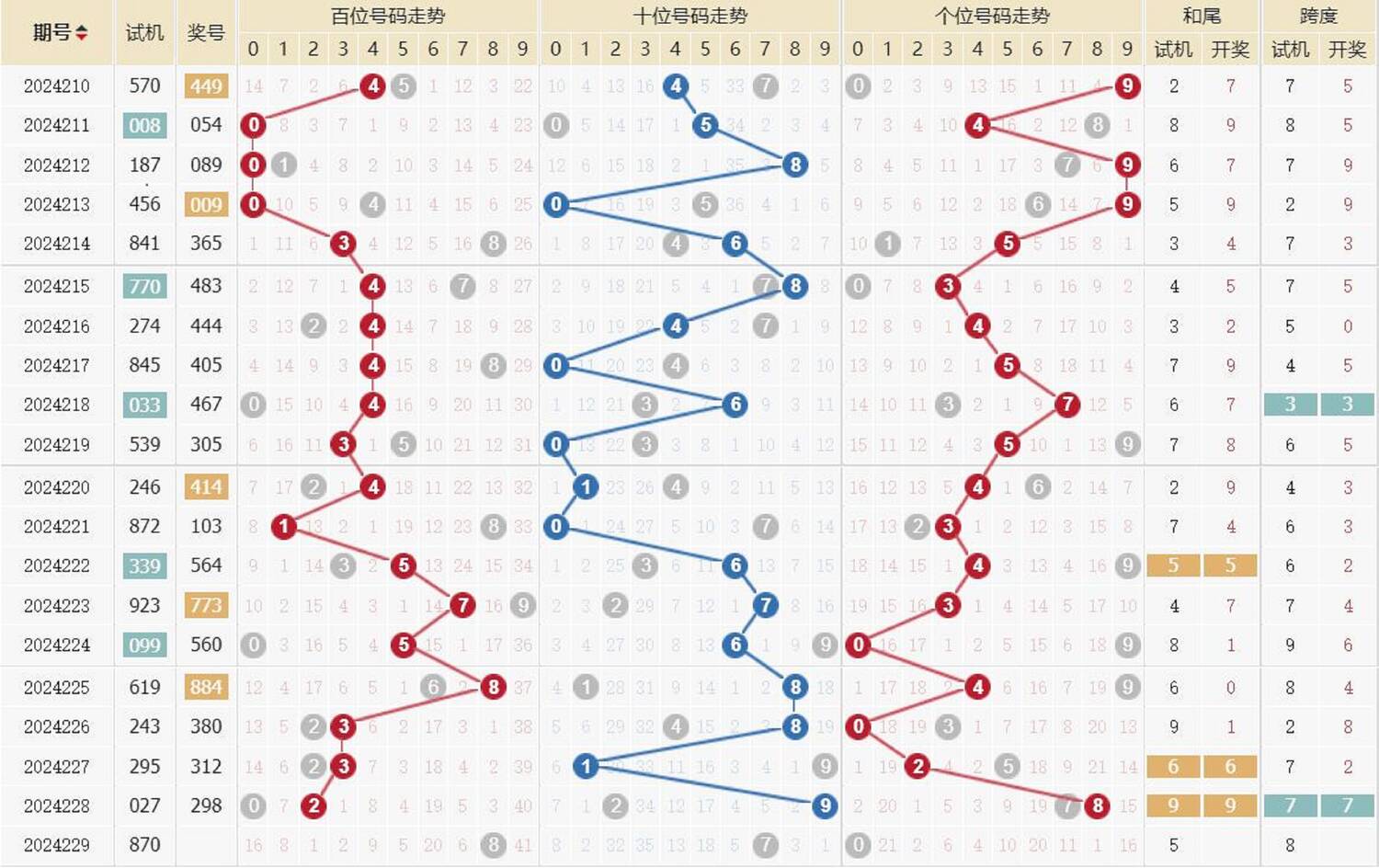 期数 | 试机号 | 关注码 | 金码 | 对应码 | 开奖号 | 出号 |