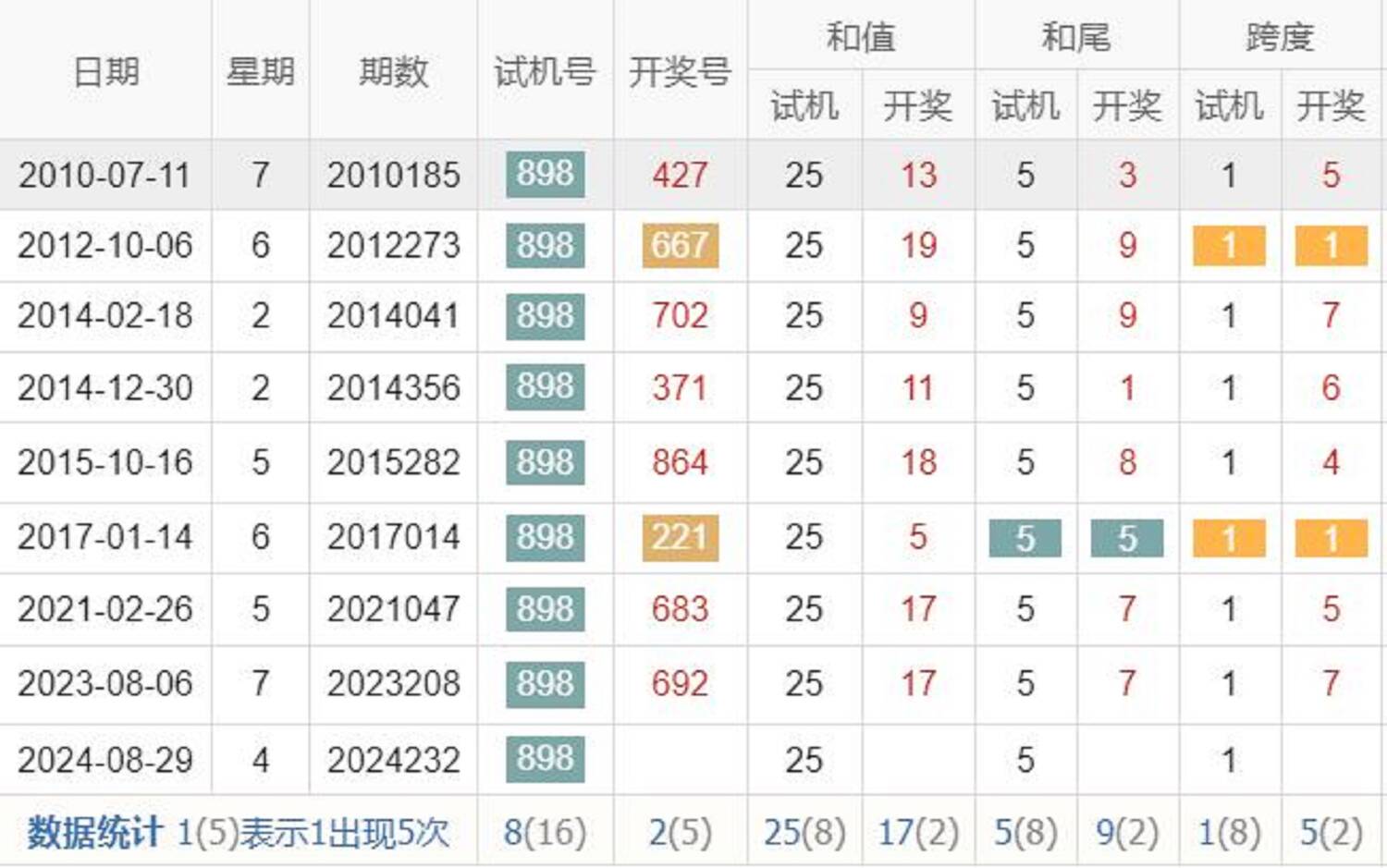 历史出现情况统计