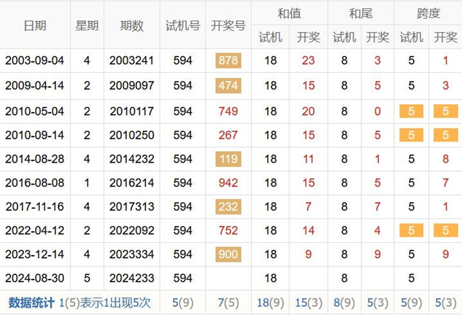历史出现情况统计